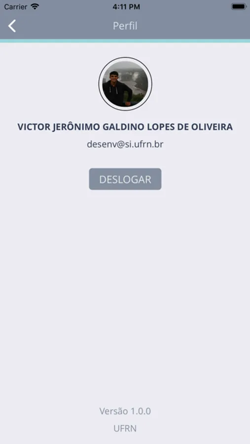 O app conta com uma tela de perfil do usuário, e uma tela contendo a lista de inventários.