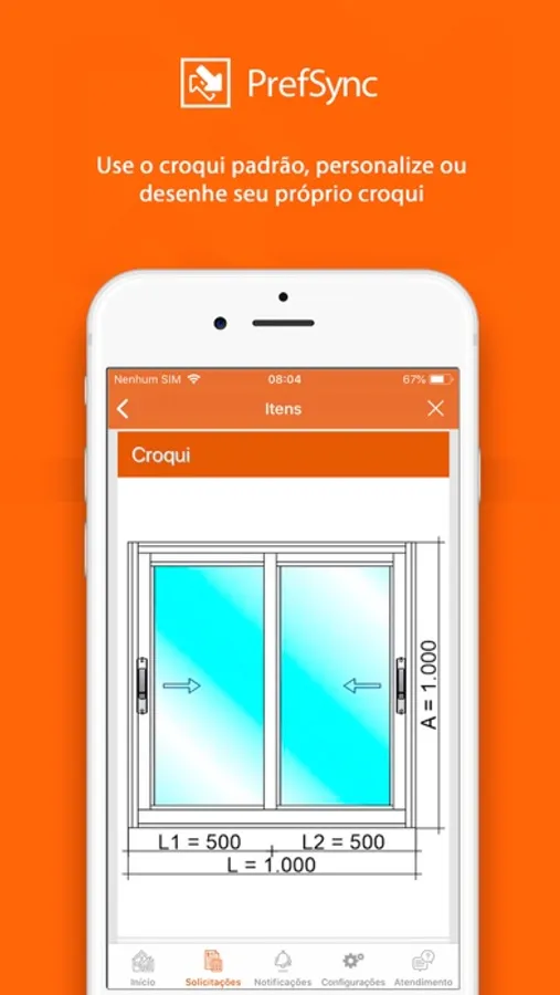 Desenhar diretamente no app o modelo de esquadria que fará parte da solicitação;