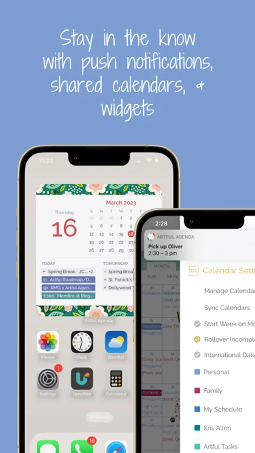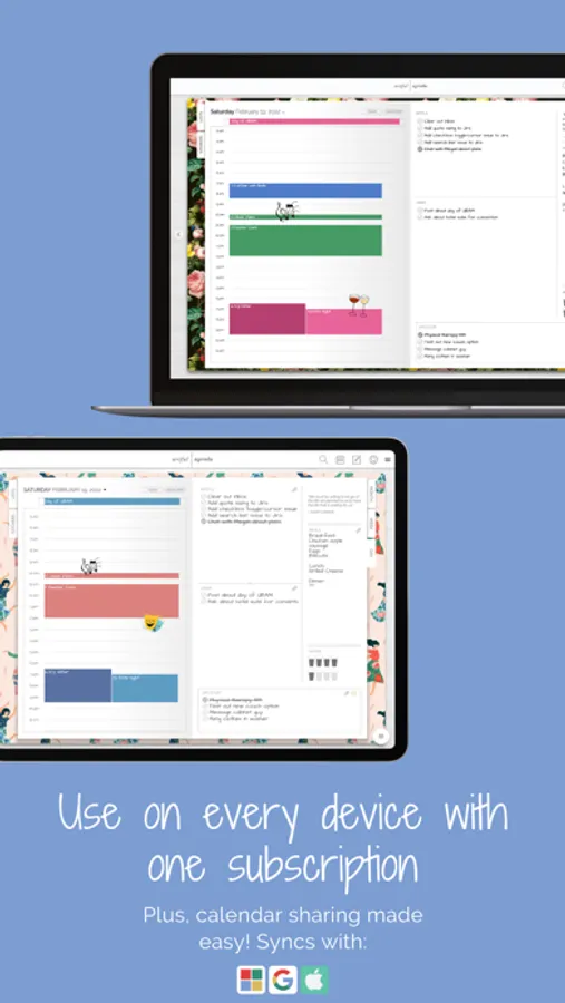 - View all of your calendars in one place! Syncs with major online calendar platforms, including Google, Apple and Outlook