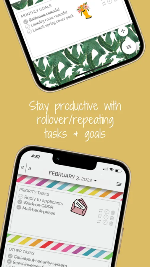 - Increase productivity with repeat, rollover, and “snooze” task functions plus the ability to assign tasks to certain days