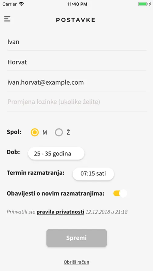 Ti sam biraš vrijeme razmatranja, a aplikacija te podsjeti da je razmatranje stiglo.