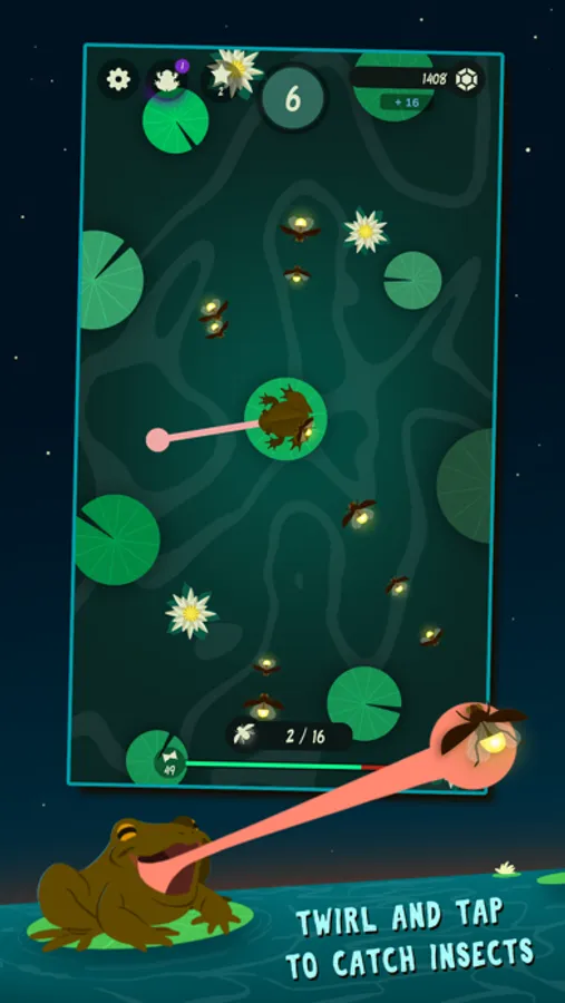 Sit back, relax and twirl in Twirly Toad; a relaxing and casual bug catching game. Satiate Todd the Toad's endless hungry by simply tapping to extend his tongue. Then, using the end of it, catch multiple insects while he spins round and round on his lily pad. Harness your accuracy and skills to finish the meal in time but watch out for wasp. Unlock over 50 different skins for Todd to increase your rewards and climb to the top of the leaderboard.