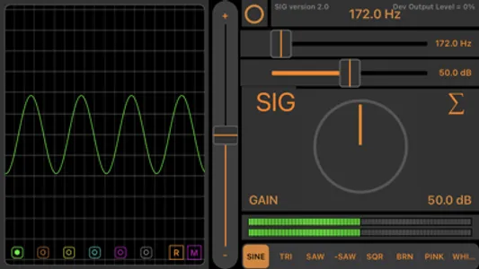 SIG is a signal generator, providing sine, triangle, sawtooth, and square waves, and pink and white noise. Useful for the calibration/set up of professional sound systems...