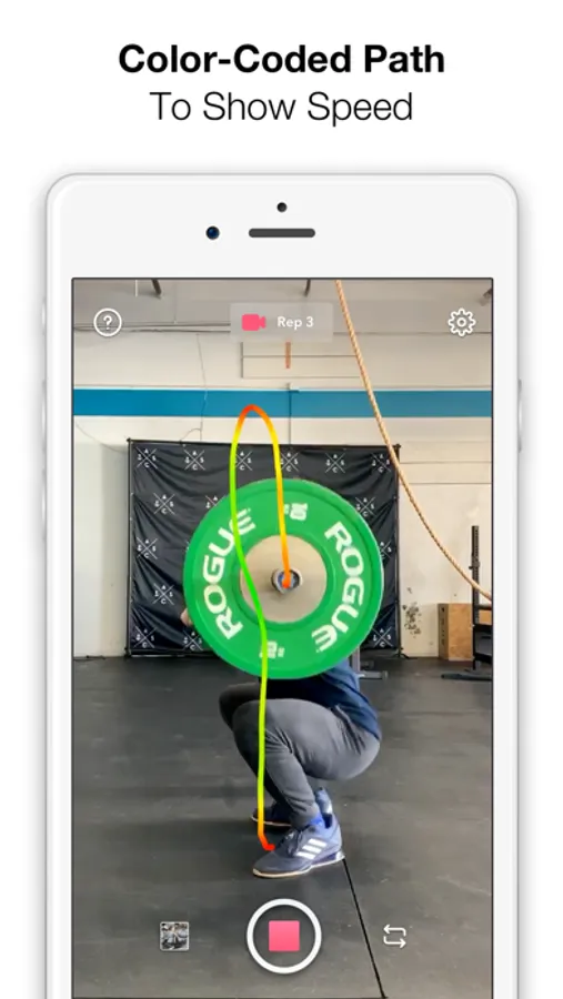 Instantly see the barbell path. It’s also color-coded to visually indicate the speed of the bar.
