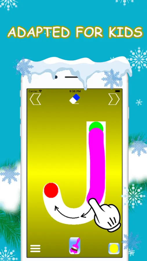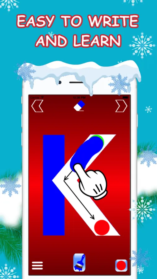 The "Write the Letters" application is designed specifically for kids to memorize letters. To facilitate the writing of letters complex letters are divided into separate elements. For correct writing, each element of the letter is equipped with an arrow showing the direction of movement of the finger and two circles: green to start the movement, red for the end.