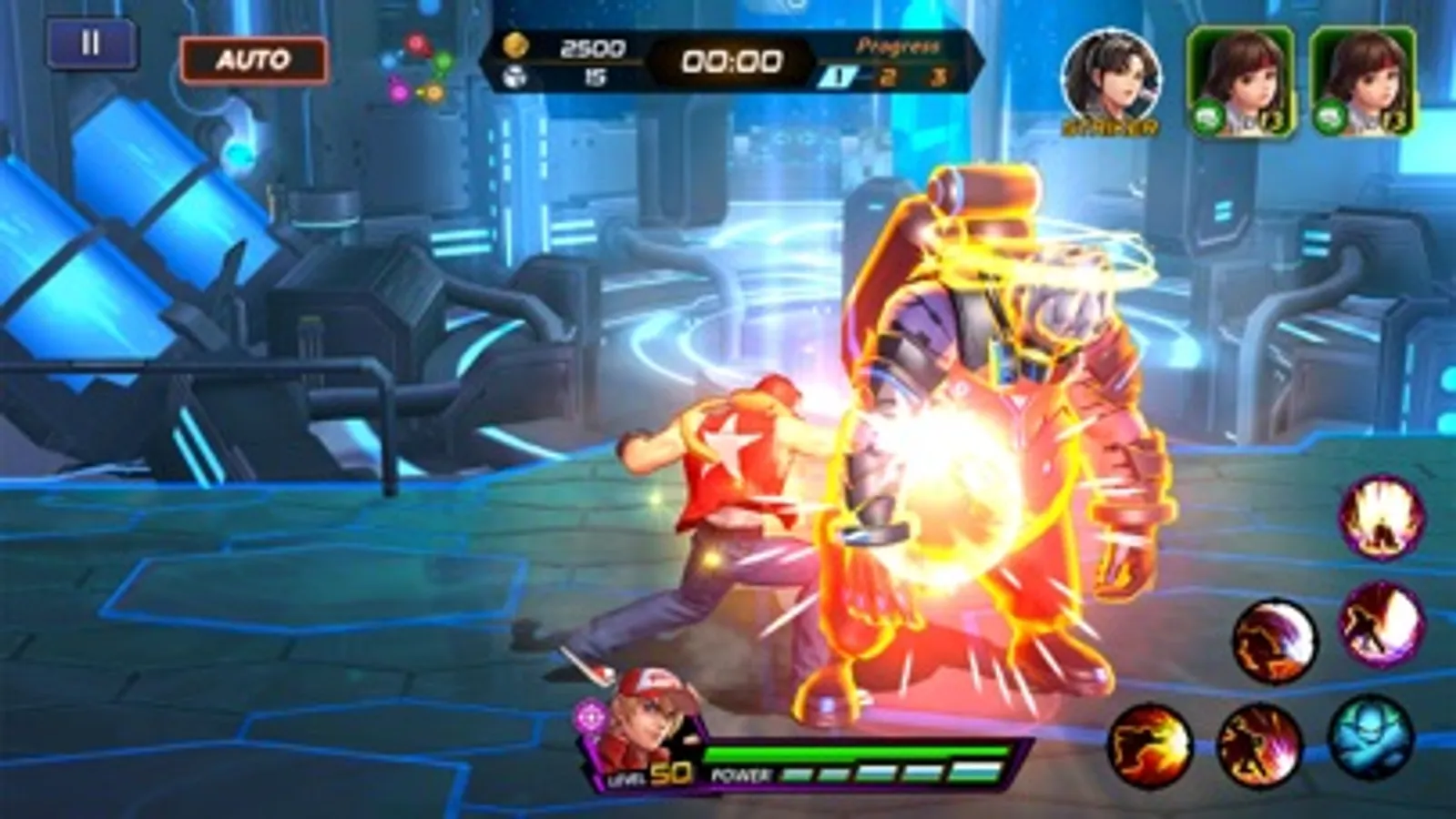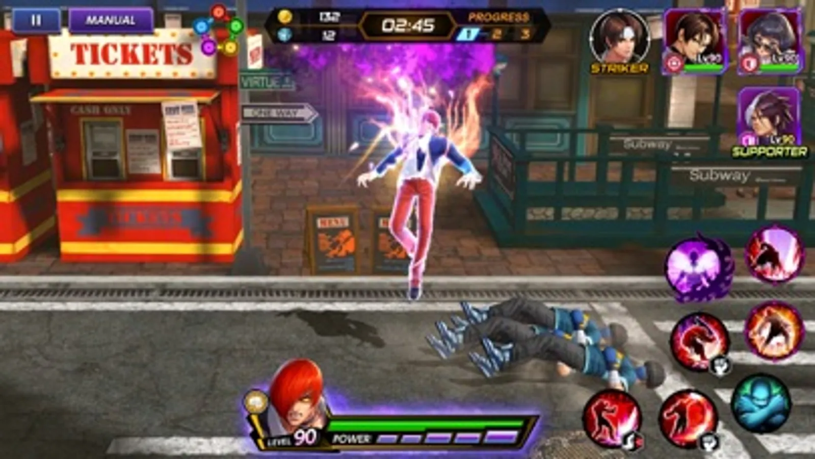 Take on players around the world in real-time matches to determine who is the true King of Fighters! Compete in Arena, League Match, Tournament modes and more as you use your skills to become the greatest of all time!