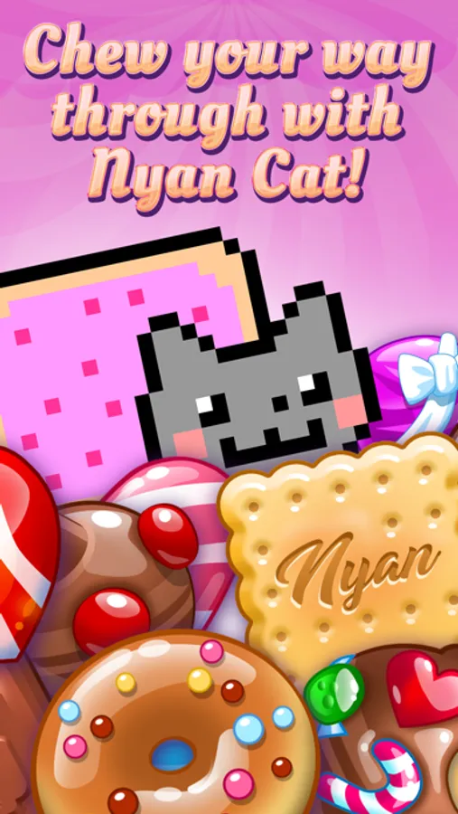 Nyan Cat: Candy Match takes your favourite switch and match game mechanics and nyans them up to an intergalactic level. Are you a candy enthusiast? We got you covered! Do you love cats? Good news: cats love you too! Fan of rainbows? We got 'em! Always wanted to be more Nyan? Look no further!