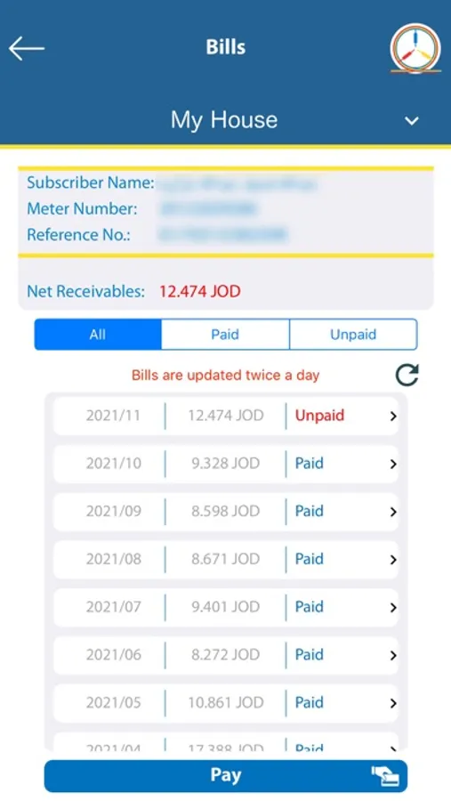 - Payments Record: This feature only shows the successful payment via the JEPCO mobile application.