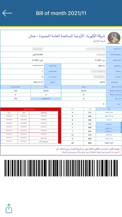 § Can pay all outstanding bills/invoices by pressing the barcode icon next to the total bills/invoices, which show the barcode that the JEPCO cashier can read.