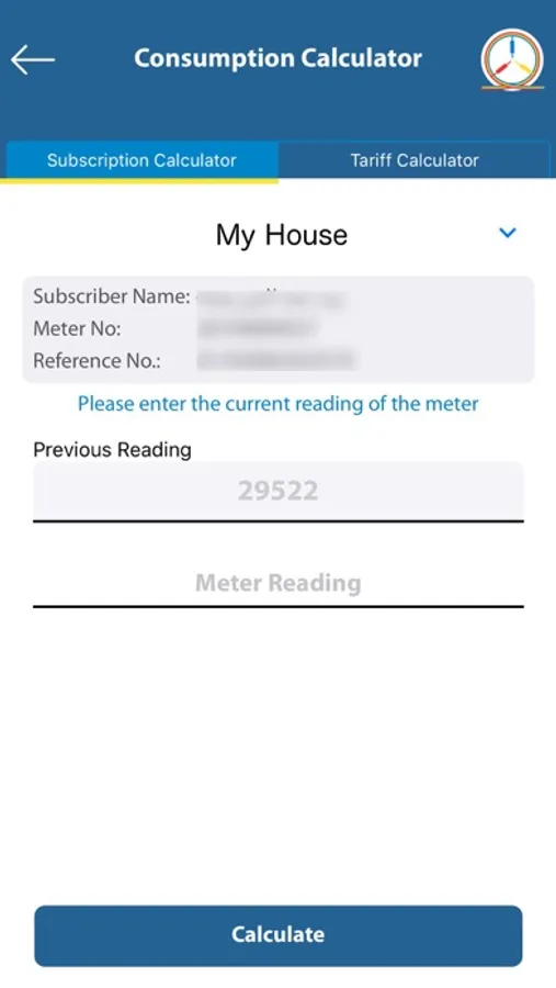 . Use to "Calculate" for the current (assuming that the consumption is for a month and calculated on the latest tariff)