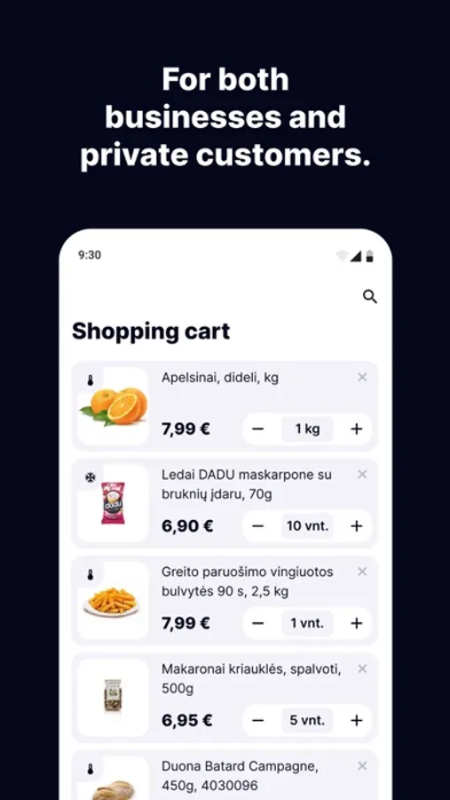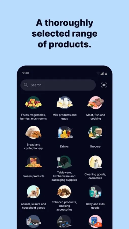 • Carefully selected groceries, fresh fruits & vegetables, frozen products, non-food assortment