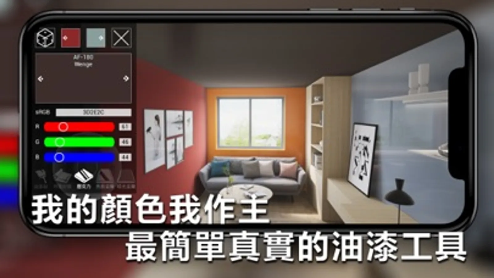 Paint Brush". Click on the "Paint Brush" button to open the panel, slide the RGB tri-color bar as you like to find out your favorite paint color, and then click on the wall or floor you want to paint to see the paint effect immediately!