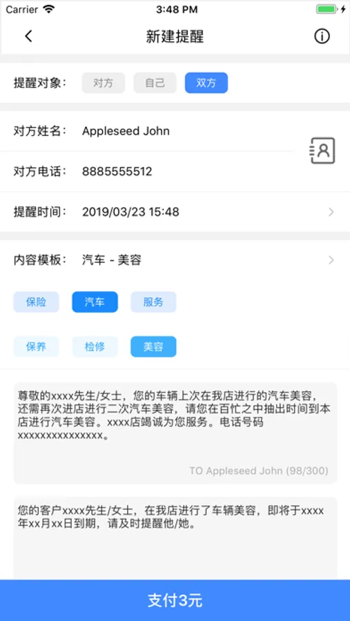 提醒王应用可帮助用户快速、定时发送短信。内含多种模板,省去编辑短信的时间,维护朋友、客户关系必备,在设定好的时间准时发送短信到对方手机。