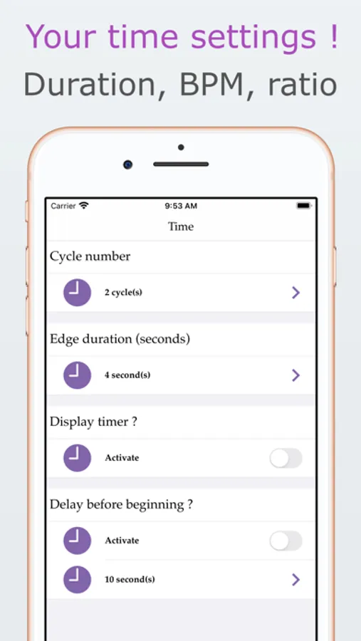It is commonly felt that increased expiration time (3 minimum exhalation times for 1 inhalation time) promotes relaxation. It is commonly felt that an increase of the inspiratory amplitude with a brief expiration (3 times on the inspiration for 1 expiration time) will be more challenging.