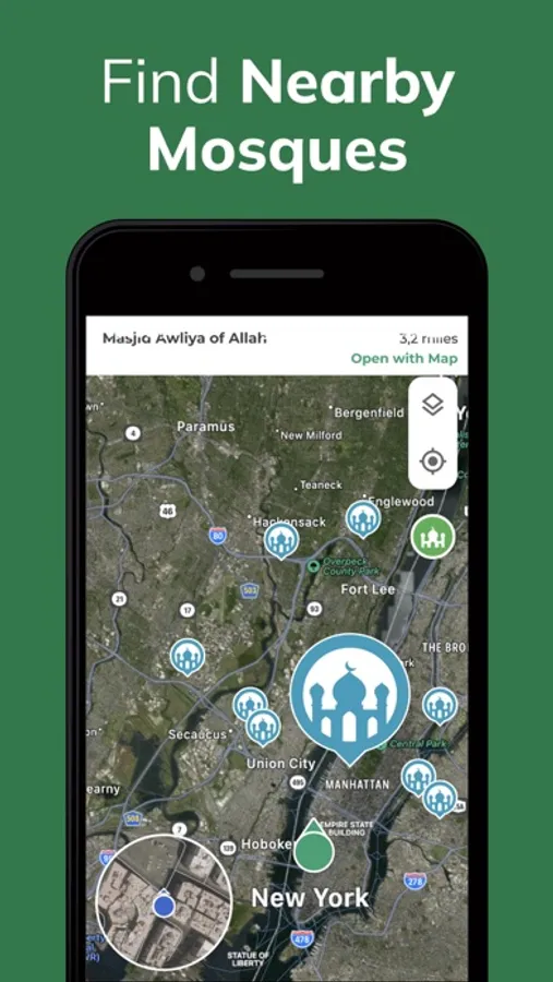- Locate the nearest mosques to your current location