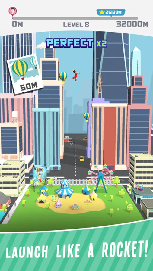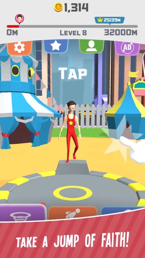 Tap to jump off the trampoline into the air and tap on it again before your jumping star reaches back to the trampoline.