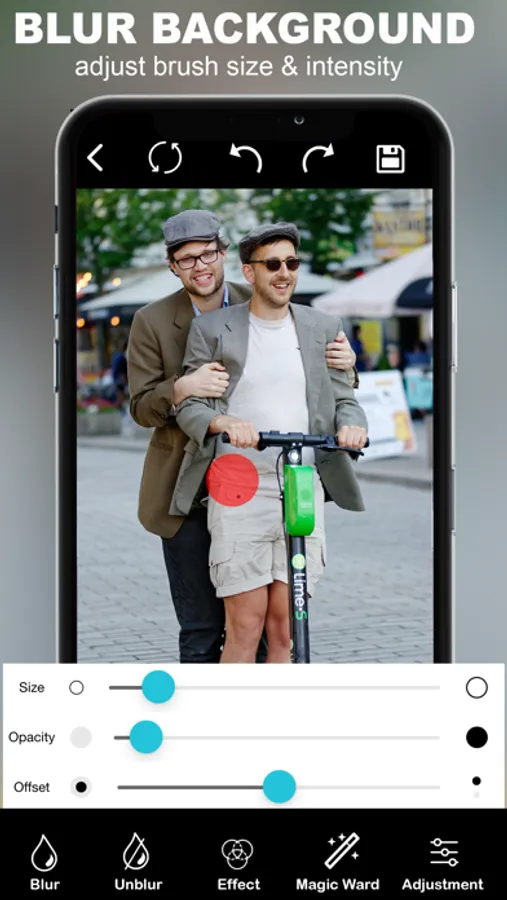 - Use the blur image brush or photo effect brush to blur and add effect any part of the photo.