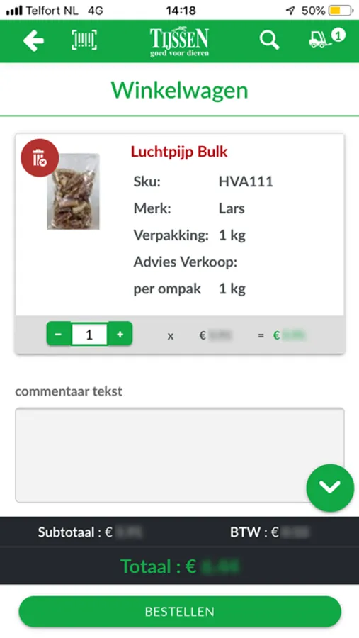Middels deze applicatie bent u in staat om nog sneller uw bestelling aan ons door te geven. U kunt direct bestellen via deze app zoals u ook gewend bent in onze webshop. Doordat u met 1 winkelwagen werkt bent u in staat om gelijktijdig in de app als online via de webshop uw bestelling te maken en af te ronden.