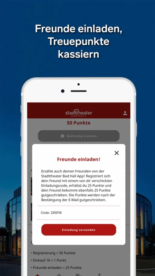 Die Stadttheater Bad Hall-App ist dein digitales Treueprogramm! Du kannst ganz einfach durch unterschiedliche Aktivitäten Punkte sammeln und diese gegen tolle Prämien einlösen.