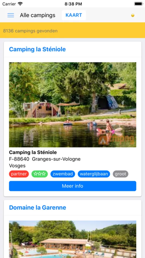 - In 'Mijn campings' bewaar je je favoriete campings.
