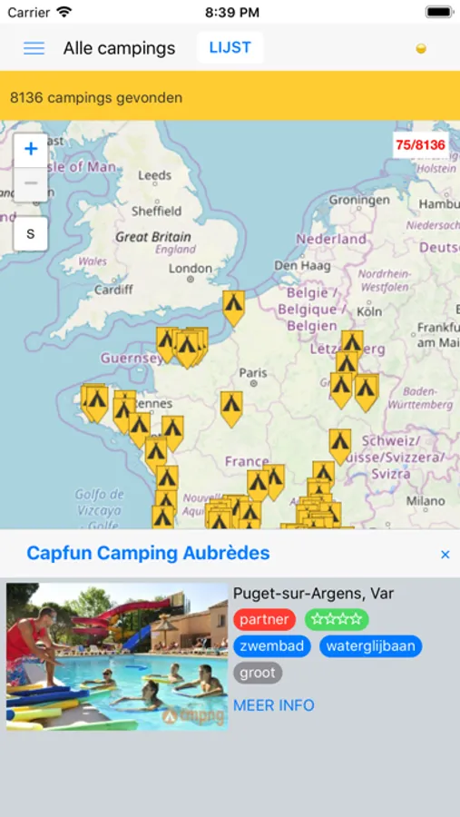 Met deze App kun je eenvoudig zoeken naar campings in Frankrijk.