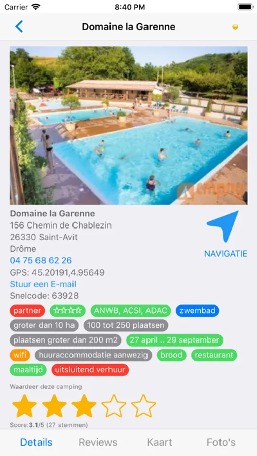- Start navigatie naar favoriete camping met Waze, Google Maps etc.