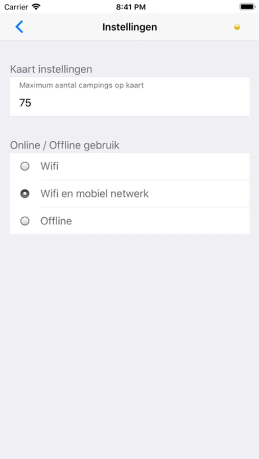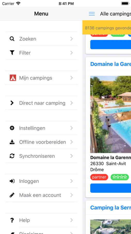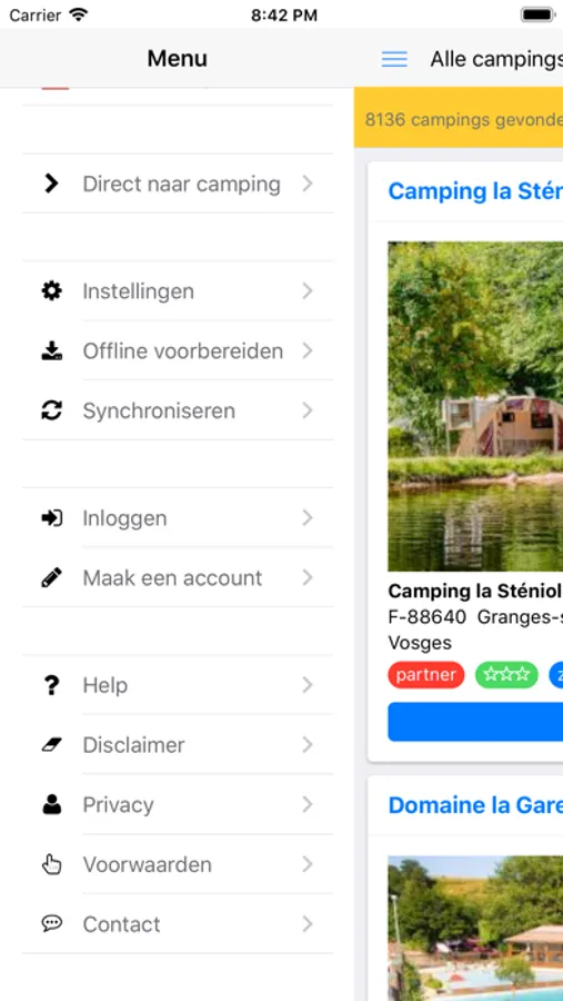 - Alleen account nodig voor offline gebruik, bewaren van favoriete campings en het toevoegen van foto's