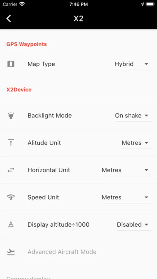 The X2 companion app connects to your X2 device via bluetooth. Allowing you to view your jump logs, set a drop zone or GPS waypoint at any where in the world and easily change X2 settings.
