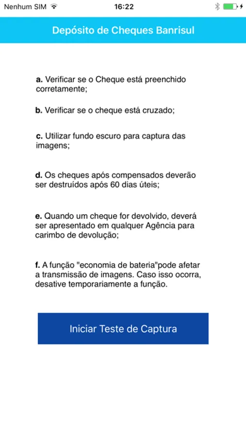 O serviço requer a instalação do aplicativo de validação segura de cheques, disponibilizado em sua loja de aplicativos.