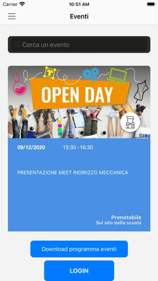 Attraverso la sezione “Eventi”, vengono presentate tutte le iniziative “orientanti” proposte dagli Istituti, elencate in ordine cronologico; sarà possibile trovare le date degli Open Day, l’orario delle attività di laboratorio e di ogni altro evento finalizzato all’orientamento dello studente.