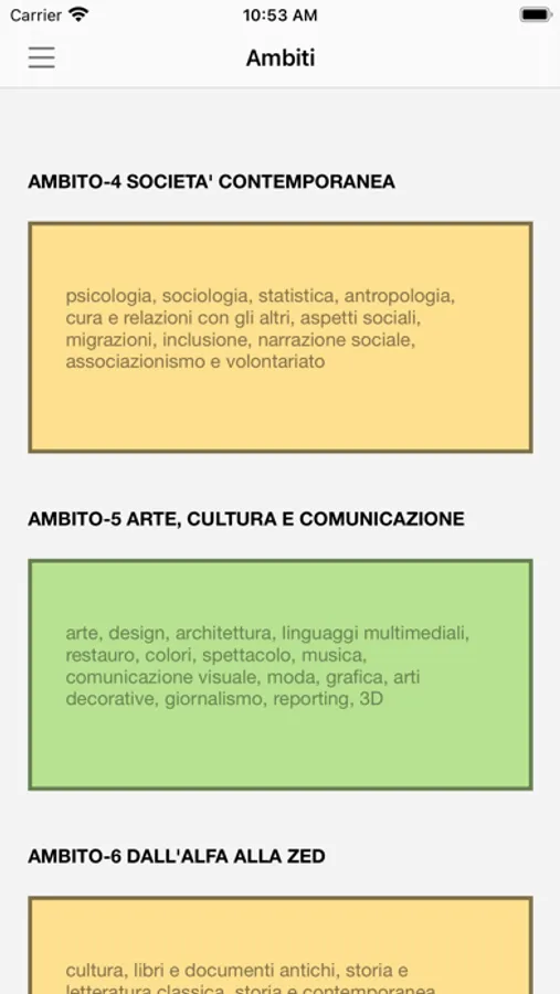 Allo studente verranno presentati dieci possibili “Ambiti” di interesse; dalle prospettive indicate dai singoli “Ambiti”, il ragazzo potrà scegliere quelle che più corrispondono alle proprie passioni e riuscirà ad individuare le realtà scolastiche che potranno formarlo in quel settore.