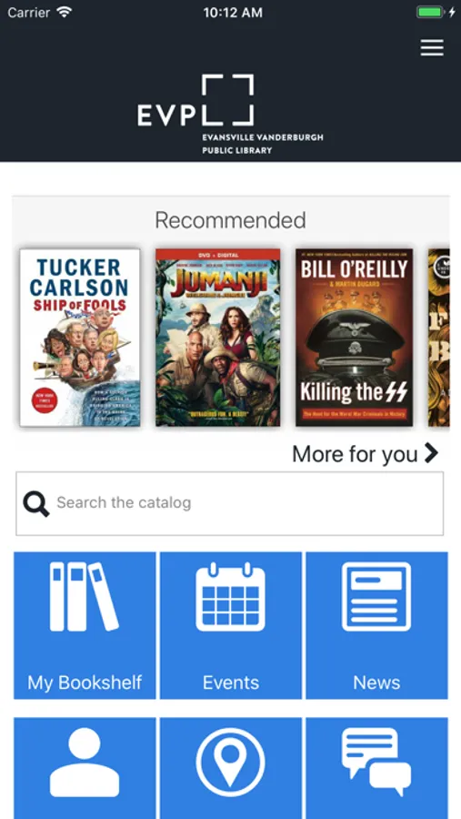 Connect directly with the Evansville Vanderburgh Public Library from your device! View the entire EVPL catalog, download titles, and checkout the EVPL calendar with the EVPLibrary app.