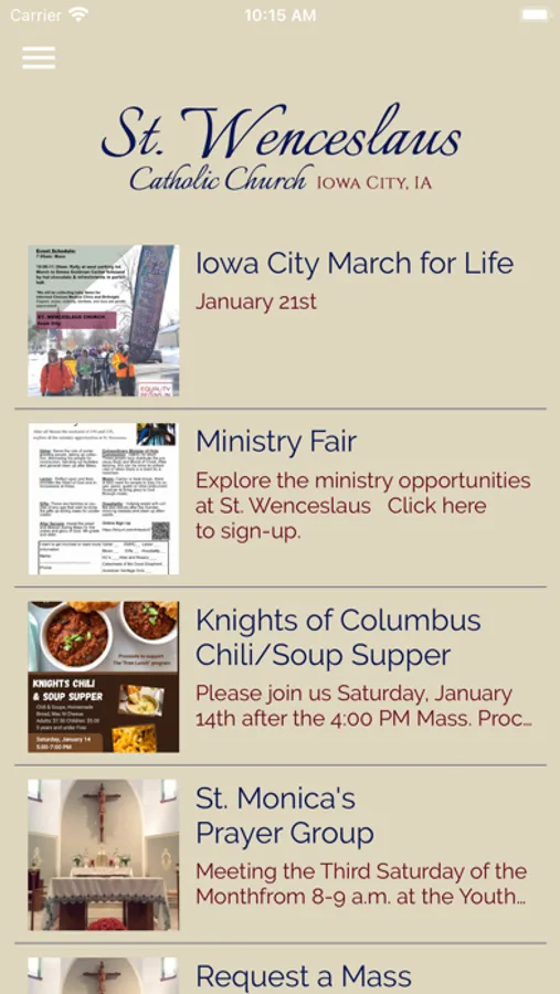 Our app will help you stay connected with everything here at St. Wenceslaus Parish in Iowa City, IA. You will find direct access to parish news, calendar, and our Mass times. For those that are new, or have been away for a while, we have information to help you learn about the Catholic faith. We also have many resources to help you pray, including Daily Readings in text and audio form, along with some very useful links.