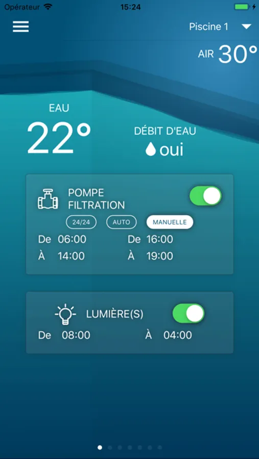• Gérer les accessoires : Pompe à chaleur, robot de nettoyage, nage à contre courant, fontaines ou l'éclairage du jardin