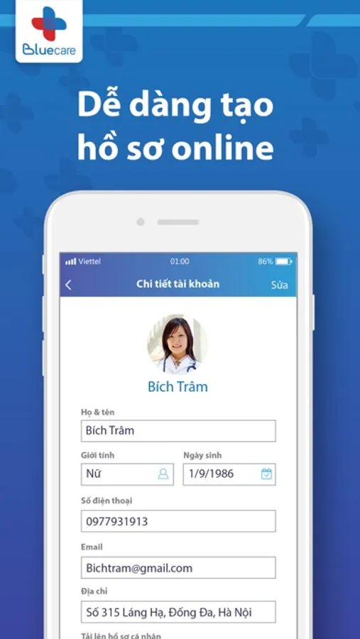 Bluecare là một hệ sinh thái chăm sóc sức khỏe toàn diện đầu tiên ở Việt Nam, dựa trên việc xây dựng nền tảng kết nối di động thông minh, lấy nhân văn là giá trị trung tâm giúp mọi người dễ dàng tiếp cận chuỗi dịch vụ chăm sóc y tế cho bản thân và gia đình. Bluecare phấn đấu hết mình nhằm đảm bảo sẽ cung cấp cho bạn và gia đình những trải nghiệm tuyệt vời về chăm sóc sức khỏe toàn diện.