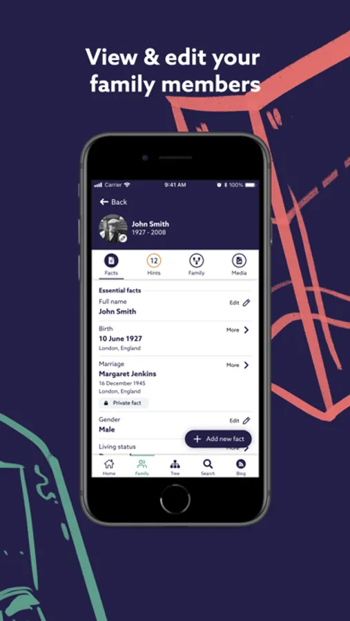 Just sign in with your Findmypast account to take your family tree with you wherever you go. Here are a few things you can do on the app: