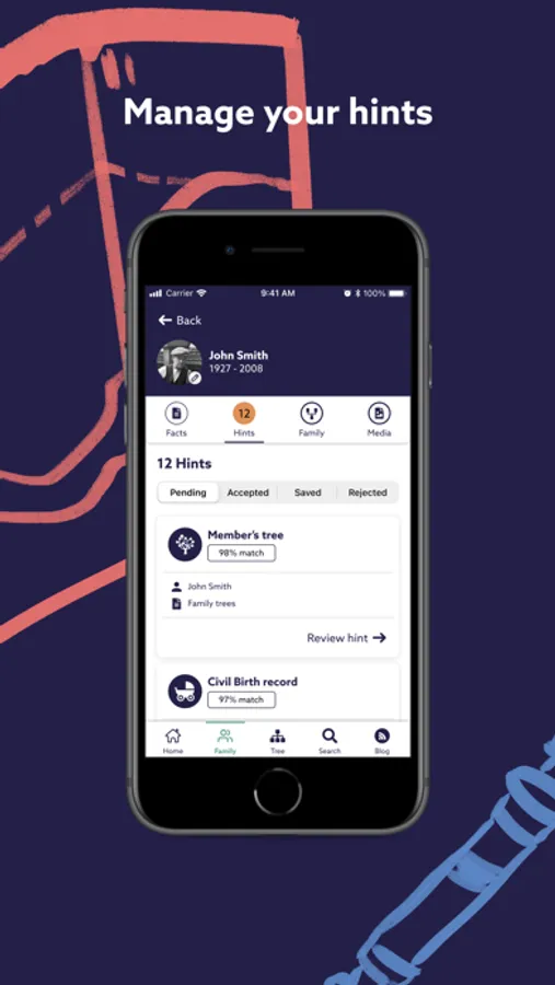 Hear about hints the moment we find them. We’ll let you know when we find your ancestors in our huge collection of records and family trees.