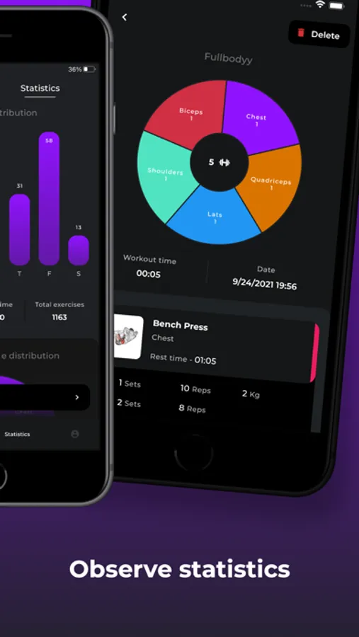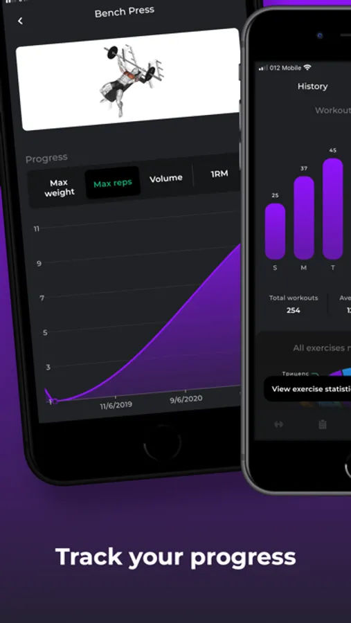 ● Workouts / routines / exercises history - view all your workouts history and see how your progress goes