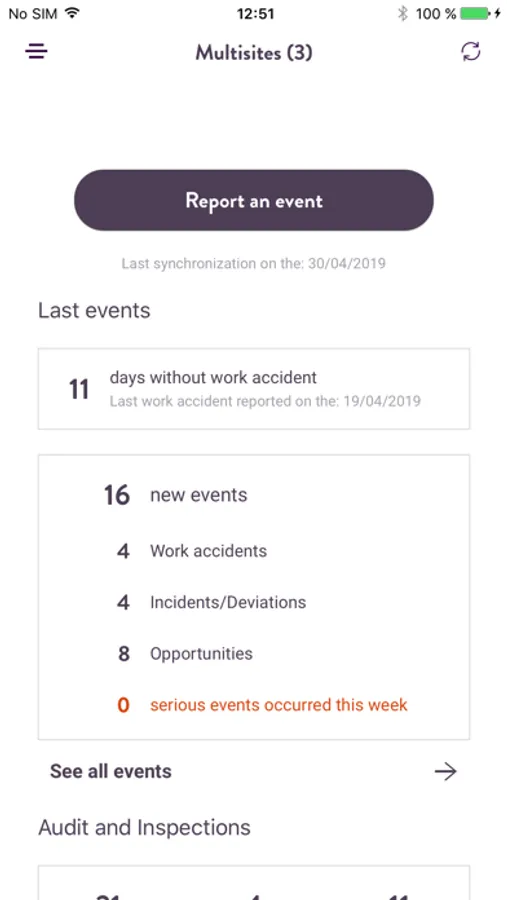 Keep an eye on your key indicators and keep track of your Events, Audits and Inspections, in single or multi-site mode.