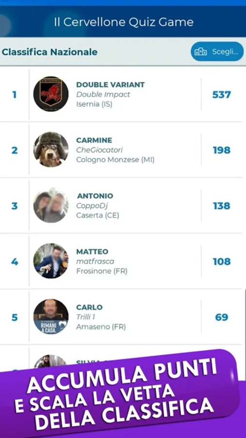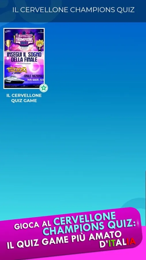 - Gioca al Cervellone Quiz Game, il quiz game più amato in Italia, e partecipa al "Champions Quiz" il primo campionato italiano del quiz per locali.