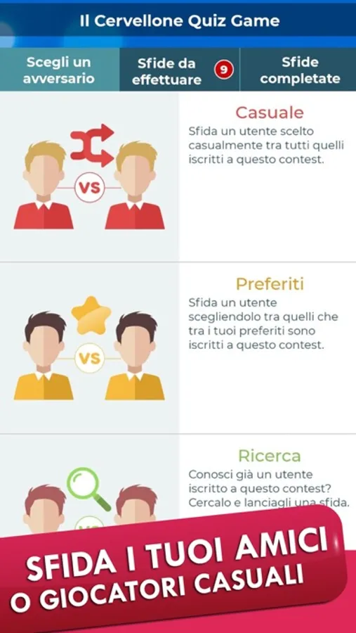Il Cervellone Quiz Game, High School Game, Goal Game... sono sono alcuni dei più famosi contest a cui puoi partecipare con l'app Wicontest!