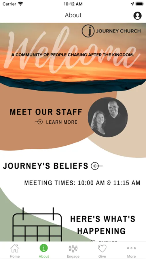 Connect with the Journey Church app! We want our church family to be a community of believers, where everyone is welcome and everyone can play a part. Community is about belonging, and we want everyone to feel like they do. You will be able to view upcoming events, give, read the bible, and more!