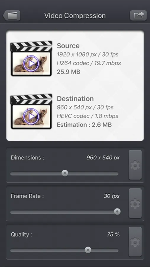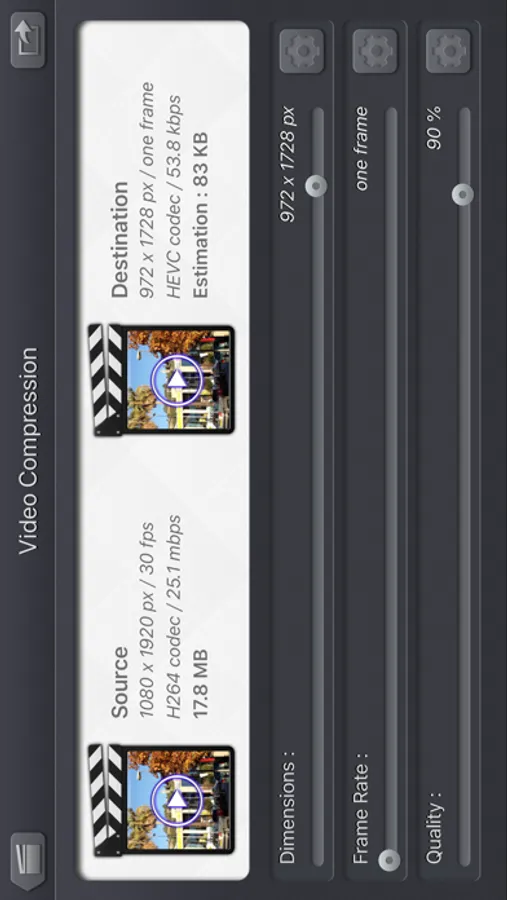 • Real-time estimation of the file size of the destination video, with the ability to preview the result.