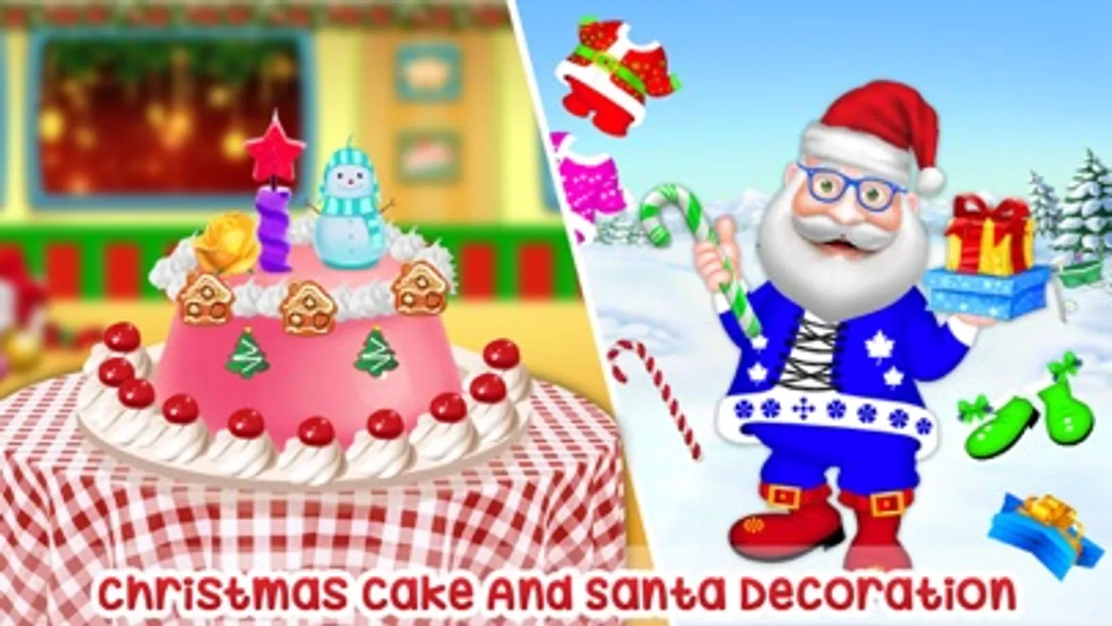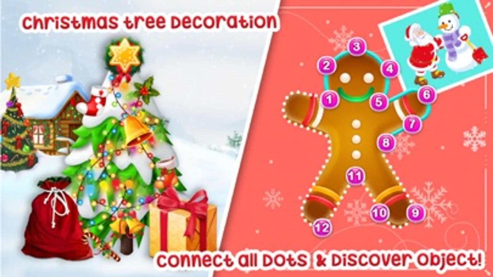 One of the best Christmas game. Decorate Christmas tree, draw & color Christmas doddle, decorate Christmas cake, dress up girls, santa jumping game and more!