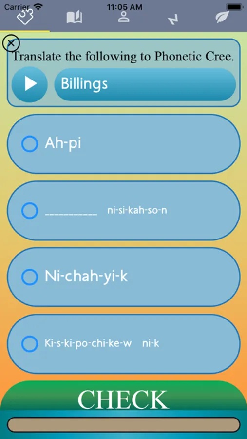 Time to put your knowledge of the Cree Language to the test! In these exercises, you will be given a word or phrase and challenged to match it to its coresponding word or phrase from the options down below.