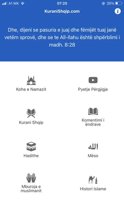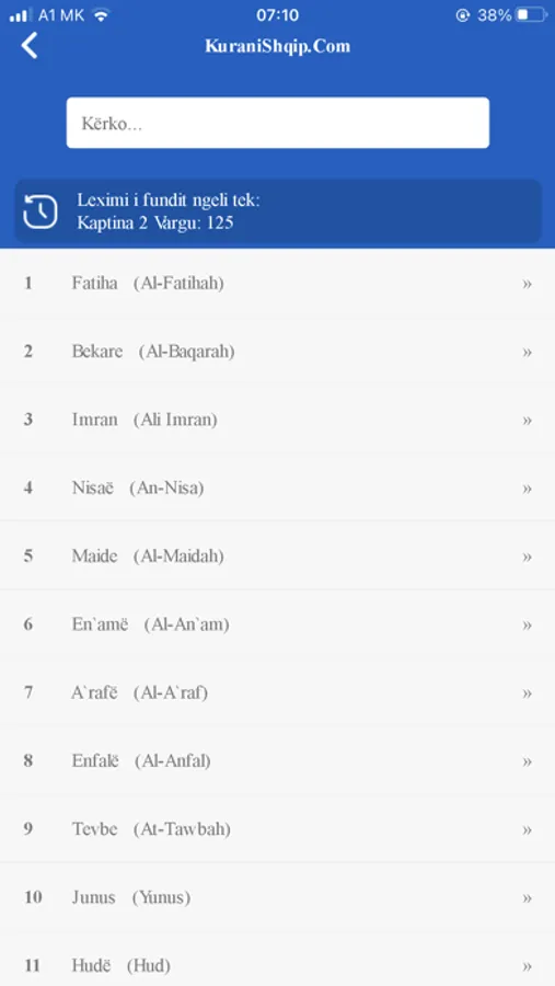-Faqe e dedikuar për mësimin përmendësh të pjesëve nga Kurani