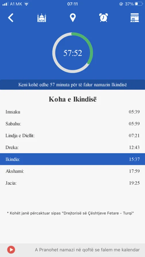 -Mundësi për aktivizimin e Alarmit (njoftim me zë) në kohët e Ezanit