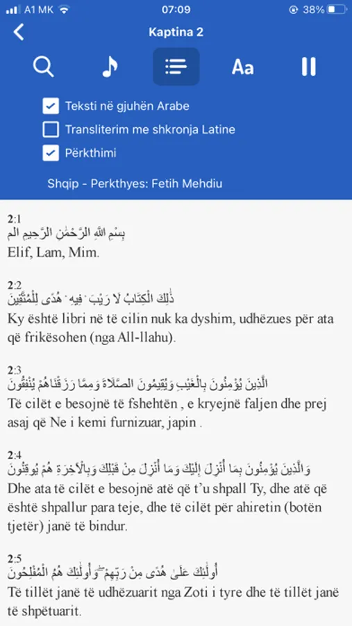 -Transliterim (teksti Arab me shkronja Shqipe "Latine")