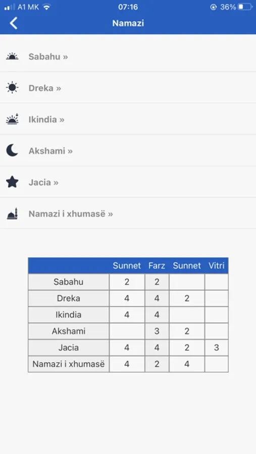 1. Kohët e namazit (Takvim) për të gjitha vendet e botës.