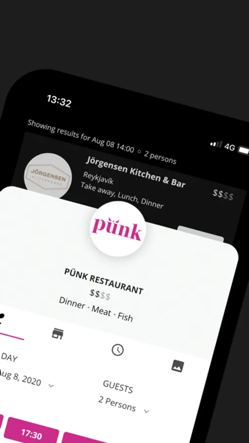 Book a table at Icelandic restaurants with the Dineout Iceland app. Want to try a new dining experience or simply pay a visit to your favourite Icelandic restaurant? The Dineout restaurant booking engine will make sure that you and your friends and family will have a seat at the table! Pick a date, number of guests and finally your favourite cuisines if desired. The Dineout restaurant booking engine will then work it's magic and display available restaurants that meet your criteria. You get a detailed description for each restaurant along with multiple pictures of the dining experience.